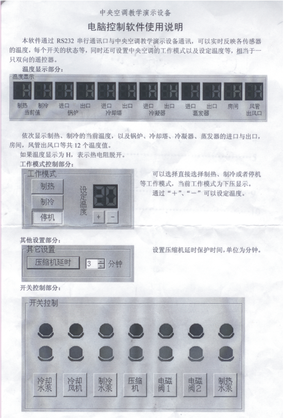 14、中央空調(diào)控制方法,即可通過(guò)實(shí)驗(yàn)臺(tái)控制,又可通過(guò)電腦控制。