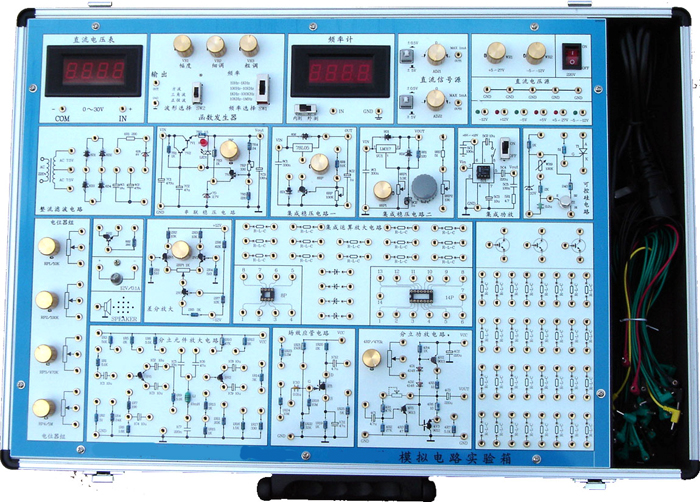 模擬電路實(shí)驗(yàn)箱是根據(jù)最新的《高等工業(yè)學(xué)校電子技術(shù)基礎(chǔ)》教學(xué)大綱中確定的教學(xué)實(shí)驗(yàn)要求為基礎(chǔ),汲取了眾多專業(yè)教師的教學(xué)經(jīng)驗(yàn),并綜合了眾多同類產(chǎn)品的優(yōu)點(diǎn)而設(shè)計(jì)的。它函蓋了《模擬電子技術(shù)基礎(chǔ)》課程全部實(shí)驗(yàn)內(nèi)容,既為初學(xué)者提供了驗(yàn)證性實(shí)驗(yàn)電路,又為課程設(shè)計(jì)提供了擴(kuò)展平臺(tái)。
