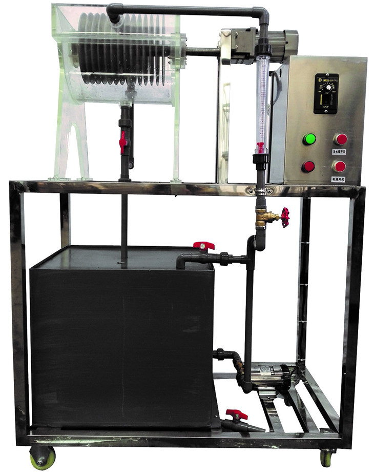 轉(zhuǎn)盤反應(yīng)器、水泵、調(diào)速電機(jī)、流量計、配水池、閥門管道、電路控制系統(tǒng)、框架及控制屏。