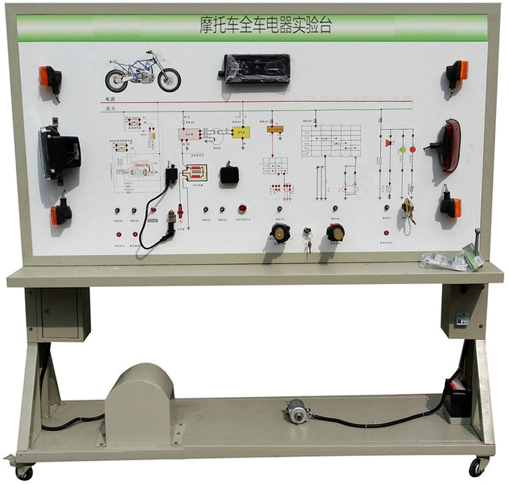 摩托車電器電路實(shí)訓(xùn)裝置采用全新本田125原車全車電器,包括所有燈光、喇叭、儀表、起動(dòng)系統(tǒng)、發(fā)電系統(tǒng)以及相應(yīng)的設(shè)備等,設(shè)備整體采用近似原車的臺(tái)式布局,部件均安裝在4mm鋁塑面板上,面板采用UV平板彩色噴繪;各器件之間采用原車線束進(jìn)行連接,構(gòu)建原車真實(shí)的實(shí)訓(xùn)情景,便于學(xué)生理解和掌握。本裝置可設(shè)置典型的原車電路故障,完成對(duì)學(xué)生的技能考核,也可用于職業(yè)技能培訓(xùn)和鑒定。