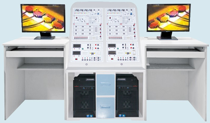 雙工位同步教學(xué)平臺:尺寸:800×600×1200mm 材質(zhì):ABS 厚度5毫米,平臺后部采用透明有機(jī)玻璃;平臺下端兩側(cè)擺放電腦主機(jī),主機(jī)中間另有兩個(gè)抽屜存放實(shí)驗(yàn)器材,平臺上部擺放2個(gè)工位的數(shù)/模電同步互動教學(xué)系統(tǒng)硬件模塊。 |
