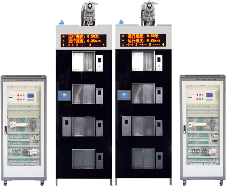 電梯控制技術綜合實訓裝置,電梯模型,電梯教學設備是專門為職業(yè)院校開設的電氣自動化、機電一體化、機械制造與自動化等相關專業(yè)而研制的,裝置根據(jù)智能建筑中升降電梯的機構按照一定的比例縮小設計,所用設備、器件與實際電梯基本一致,采用槽鋼方管框架結構整體設計,正面使用透明有機玻璃面板,融低壓電氣、PLC、變頻調速、智能人機、傳感檢測、視頻監(jiān)控、智能考核系統(tǒng)等于一體,實現(xiàn)智能電梯復雜的開關量控制、時序邏輯控制。通過該裝置的操作訓練可考核學生掌握智能電梯的裝調與維護綜合能力,如電梯呼梯盒的安裝、井道信息系統(tǒng)的安裝、平層開關檢測位置調整、門機機構調整、電氣控制柜的器件安裝、接線、變頻器參數(shù)設置、PLC編程與調試、電梯群控功能調試、電梯故障排除、運行維護等,除了滿足專業(yè)實訓教學,還能開展技能考核。