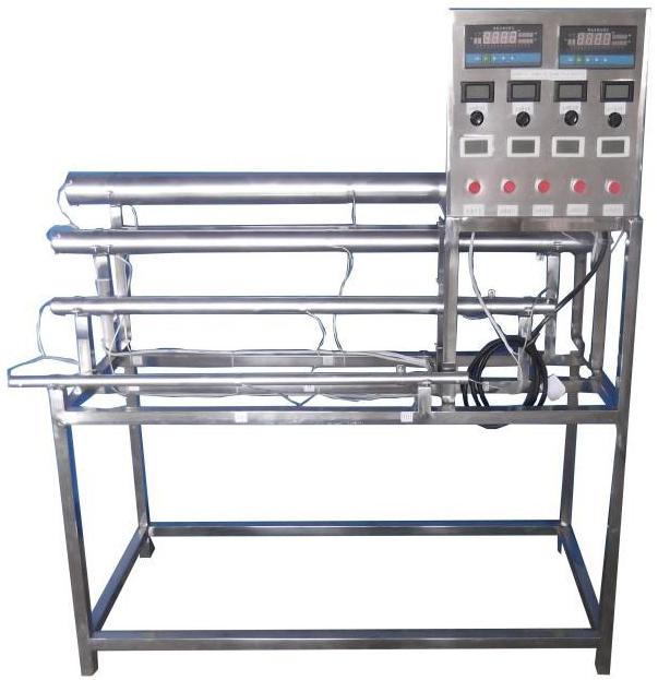 不同長度和直徑的電鍍紫銅管四根,管內(nèi)設(shè)置加熱器,固體調(diào)壓模塊無機(jī)調(diào)節(jié)加熱,測溫傳感器,電功率測試數(shù)顯儀表,萬能信號輸入巡檢儀顯示溫度,各管配有溫度控制儀表,不銹鋼臺架及控制屏等。