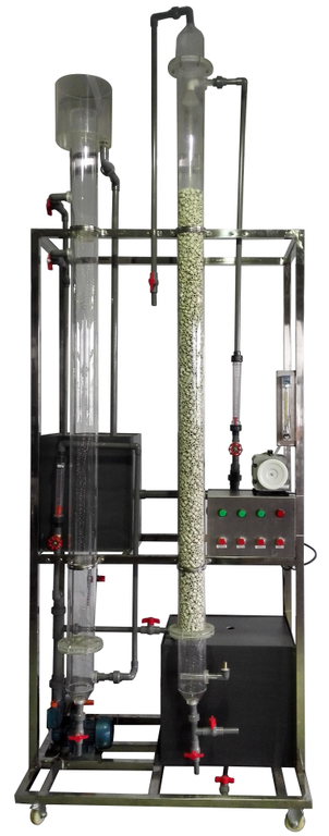 中和柱、吹脫柱、空壓機(jī)、泵、填料、流量計(jì)、配水池、閥門管道、電路控制系統(tǒng)、不銹鋼框架、控制屏。