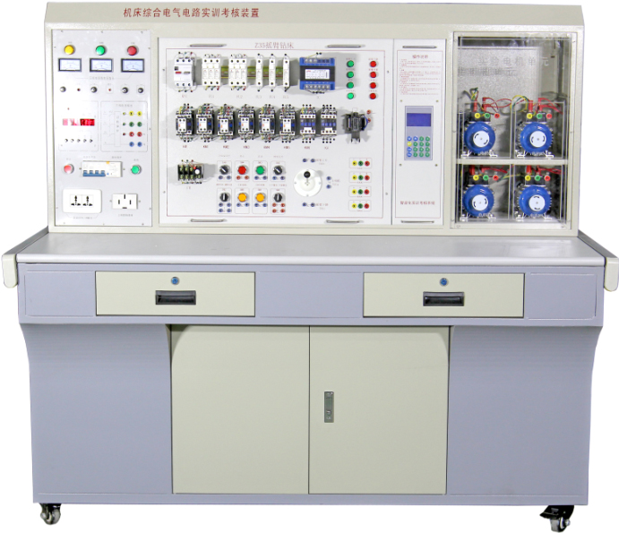機(jī)床電氣控制實(shí)訓(xùn)室設(shè)備是機(jī)電設(shè)備維修與管理、電氣自動(dòng)化技術(shù)等專業(yè)學(xué)生的實(shí)訓(xùn)場所,通過實(shí)驗(yàn)、實(shí)訓(xùn),使學(xué)生掌握工廠常用的各類型設(shè)備的電路維護(hù)檢修。如鉆床控制電路、車床控制電路、銑床控制電路、磨床控制電路及鏜床控制電路等。主要產(chǎn)品有普通車床、萬能銑床、萬能外圓磨床實(shí)訓(xùn)考核裝置,可開展機(jī)床常用電器及選擇、機(jī)床繼電器控制電路的基本環(huán)節(jié)、典型機(jī)床繼電器控制系統(tǒng)的分析和設(shè)計(jì)方法、機(jī)床維修等實(shí)訓(xùn)內(nèi)容。機(jī)床電氣控制實(shí)訓(xùn)室設(shè)備面向?qū)I(yè)、機(jī)電一體化技術(shù)、機(jī)械制造與自動(dòng)化、電氣自動(dòng)化技術(shù)專業(yè) 、實(shí)訓(xùn)目的、通過實(shí)驗(yàn)實(shí)訓(xùn)使學(xué)生掌握典型機(jī)床電氣控制系統(tǒng)的安裝、調(diào)試及維護(hù)的操作技能,提高學(xué)生的動(dòng)手能力。本實(shí)訓(xùn)室還可用高級維修電工技能鑒定的培訓(xùn)和考核。 機(jī)床電氣技能實(shí)訓(xùn)考核鑒定裝置、主要實(shí)訓(xùn)項(xiàng)目及功能 、主要承擔(dān)《機(jī)床電氣控制系統(tǒng)運(yùn)行與維護(hù)》、《常用電氣設(shè)備控制檢修與維護(hù)》、《高級維修電工考證培訓(xùn)》等課程實(shí)訓(xùn)、實(shí)驗(yàn)教學(xué)以及相關(guān)的職業(yè)技能鑒定,可開展實(shí)訓(xùn)項(xiàng)目: CA6140車床電氣控制線路的安裝、調(diào)試及維護(hù)。 X62W萬能銑床電氣控制線路的安裝、調(diào)試及維護(hù)。 Z3040搖臂鉆床電氣控制線路的安裝、調(diào)試及維護(hù)。 電動(dòng)葫蘆電氣控制線路的安裝、調(diào)試及維護(hù)。 職業(yè)技能培訓(xùn)及鑒定、考證。 機(jī)床電氣技能實(shí)訓(xùn)考核裝置、C6140 普通車床電氣技能實(shí)訓(xùn)考核裝置(半實(shí)物)、M1432 萬能外圓磨床電氣技能實(shí)訓(xùn)考核裝置(半實(shí)物)、M7120 平面磨床電氣技能實(shí)訓(xùn)考核裝置(半實(shí)物)|網(wǎng)絡(luò)型平面磨床電氣技能實(shí)訓(xùn)智能考核裝置、PDH 電動(dòng)葫蘆電氣技能實(shí)訓(xùn)考核裝置(半實(shí)物)、機(jī)床電氣技能實(shí)訓(xùn)考核鑒定裝置、T68 臥室鏜床電氣技能實(shí)訓(xùn)考核裝置(半實(shí)物)、X62W 型萬能銑床電氣技能實(shí)訓(xùn)考核裝置 ( 半實(shí)物 )、Z3040 搖臂鉆床電氣技能實(shí)訓(xùn)考核裝置(半實(shí)物)、C650-2 普通車床電氣技能培訓(xùn)考核實(shí)驗(yàn)裝置|網(wǎng)絡(luò)型普通車床電氣技能實(shí)訓(xùn)智能考核裝置、M7130K型 平面磨床電氣技能培訓(xùn)考核實(shí)驗(yàn)裝置、網(wǎng)絡(luò)型平面磨床電氣技能實(shí)訓(xùn)智能考核裝置、PBA龍門刨床電氣技能培訓(xùn)考核實(shí)驗(yàn)裝置、網(wǎng)絡(luò)型龍門刨床電氣技能實(shí)訓(xùn)智能考核裝置、綜合機(jī)床電氣電路實(shí)訓(xùn)考核鑒定裝置(四個(gè)機(jī)床電路)、 綜合機(jī)床電氣電路實(shí)訓(xùn)考核鑒定裝置(四個(gè)機(jī)床電路)、T68 臥式鏜床實(shí)訓(xùn)及技能考核裝置、網(wǎng)絡(luò)型臥式鏜床電氣技能實(shí)訓(xùn)智能考核裝置、機(jī)床電氣控制技術(shù)及工藝實(shí)訓(xùn)考核裝置、機(jī)床電氣實(shí)驗(yàn)臺、網(wǎng)孔型萬能機(jī)床電路實(shí)訓(xùn)考核鑒定裝置、網(wǎng)孔型萬能機(jī)床電路實(shí)訓(xùn)考核鑒定裝置(含 PLC 、變頻器)、X62W萬能銑床實(shí)訓(xùn)及技能考核裝置、網(wǎng)絡(luò)型萬能銑床電氣實(shí)訓(xùn)智能考核裝置、Z3040B搖臂鉆床電氣技能培訓(xùn)考核實(shí)驗(yàn)裝置、網(wǎng)絡(luò)型搖臂鉆床電氣技能實(shí)訓(xùn)智能考核裝置、機(jī)床電氣電路仿真實(shí)訓(xùn)考核裝置、機(jī)床電器電路實(shí)驗(yàn)臺、網(wǎng)絡(luò)化智能型機(jī)床電氣技能實(shí)訓(xùn)考核裝置。