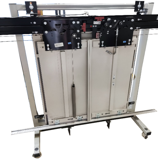 要求該裝置至少由鋼結(jié)構(gòu)框架、層門等部件組成。按電梯開門方式的不同,設(shè)備至少分為中分門跟旁開門兩種類型。整體外觀要求簡潔、實用,能夠直觀地看到層門機構(gòu)的全部器件及整個機械動作過程。