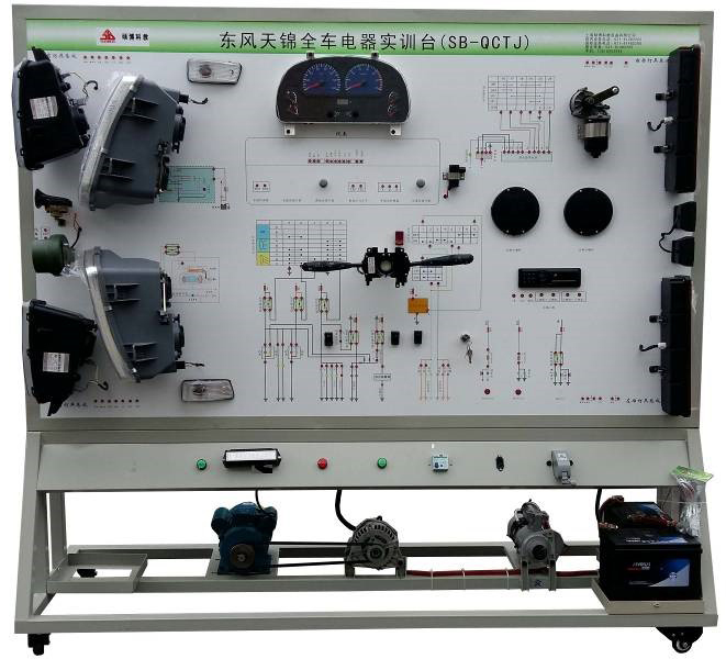 東風(fēng)天錦汽車全車電器實訓(xùn)設(shè)備采用全新東風(fēng)天錦整車電器實物為基礎(chǔ),充分展示汽車儀表系統(tǒng)、燈光系統(tǒng)、雨刮系統(tǒng)、喇叭系統(tǒng)、發(fā)動機電器系統(tǒng)、起動系統(tǒng)和充電系統(tǒng)等汽車電器各系統(tǒng)的組成結(jié)構(gòu)和工作過程。