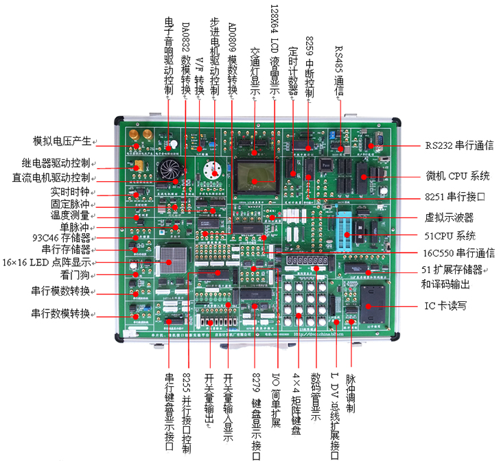 含箱體、電源、51系統和88系統以及標配實驗電路 |