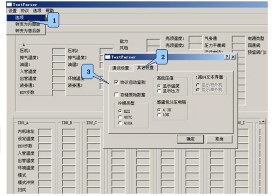 文本顯示界面:可測試壓縮機的運轉(zhuǎn)頻率,傳感器的各種數(shù)據(jù),電子膨脹閥的工作步數(shù)等幾十種中央空調(diào)的工作數(shù)據(jù)和狀態(tài),