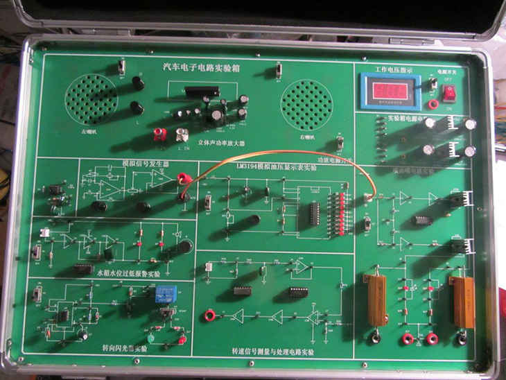汽車電子電路實(shí)驗(yàn)箱結(jié)合汽車電學(xué)的典型基本電路,由淺到深地設(shè)計(jì)了二極管和三極管基本實(shí)驗(yàn)、線性集成穩(wěn)壓電源實(shí)驗(yàn)、噴油器驅(qū)動實(shí)驗(yàn)、轉(zhuǎn)速信號測量與處理實(shí)驗(yàn)、水箱水位過低報(bào)警實(shí)驗(yàn)、轉(zhuǎn)向閃光器實(shí)驗(yàn)等六個實(shí)驗(yàn)項(xiàng)目,提供了一個給學(xué)生提高動手能力,深入理解汽車電學(xué)基礎(chǔ)知識的實(shí)驗(yàn)平臺。