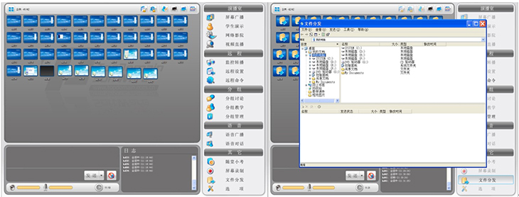 ⑥具有分屏廣播、文件分發(fā)、作業(yè)提交、網(wǎng)絡(luò)考場、遠(yuǎn)程輔導(dǎo)、遠(yuǎn)程監(jiān)控、網(wǎng)絡(luò)影院、語音廣播、語音對話、錄制與回放功能。