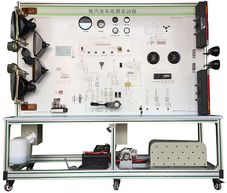 該設備采用泰安TA4360柴油機整車電器實物為基礎,充分展示汽車儀表系統(tǒng)、燈光系統(tǒng)、雨刮系統(tǒng)、喇叭系統(tǒng)、發(fā)動機電器系統(tǒng)、起動系統(tǒng)和充電系統(tǒng)等汽車電器各系統(tǒng)的組成結構和工作過程。